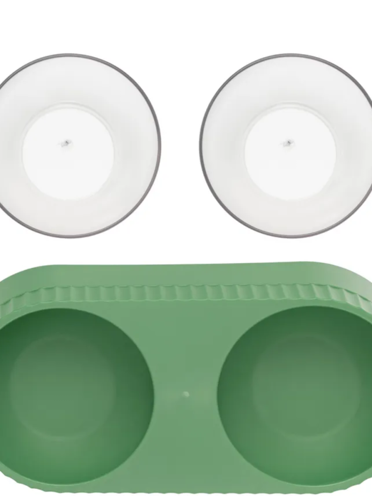 Миска двойная на подставке зеленая