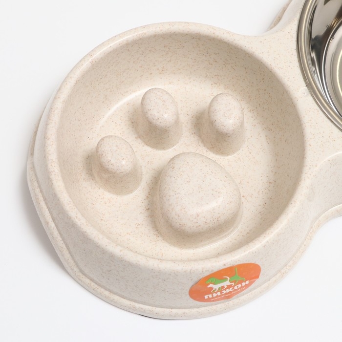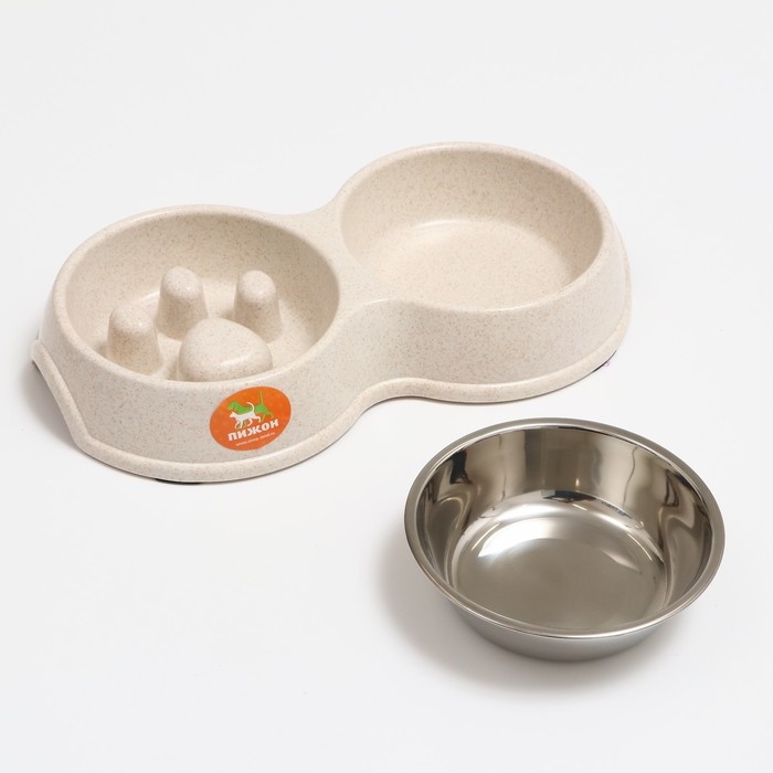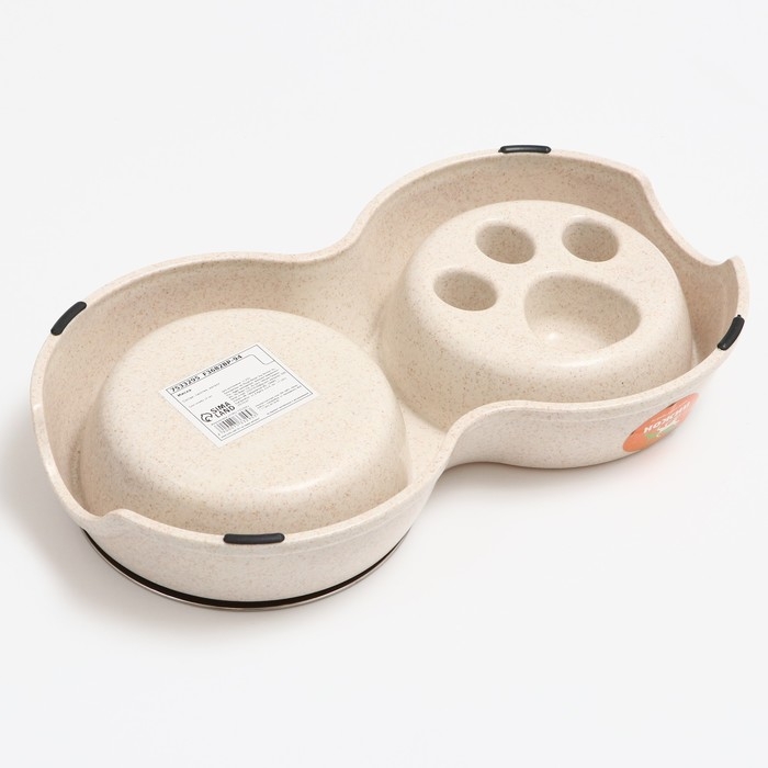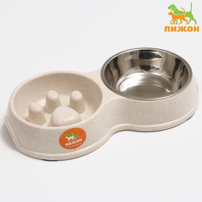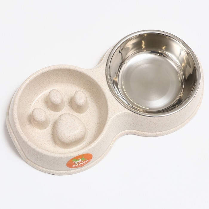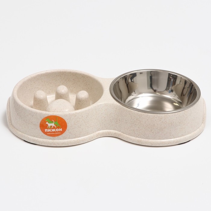 Миска двойная для медленного кормления 30,5 х 17 х 5 см, бежевая