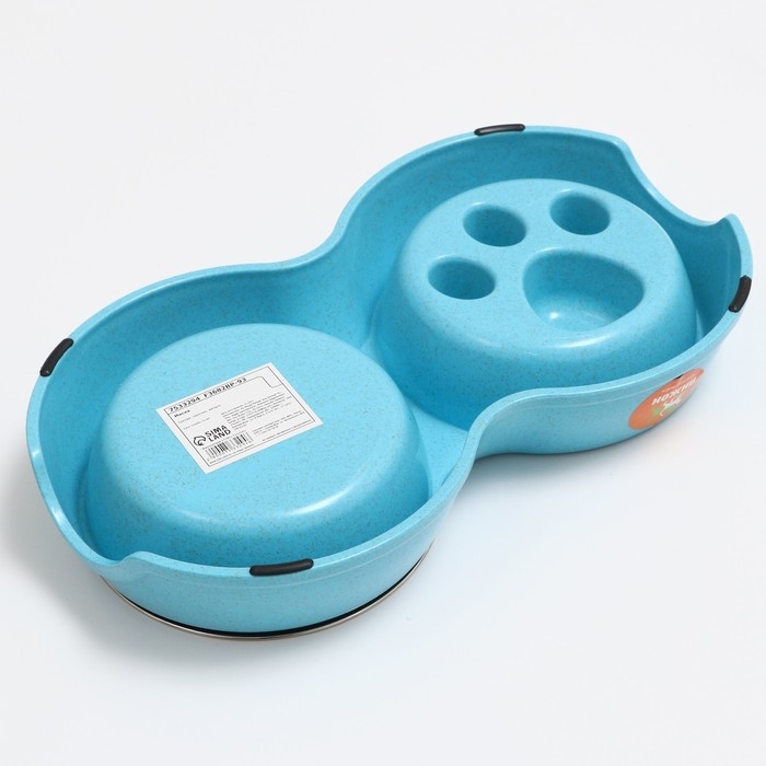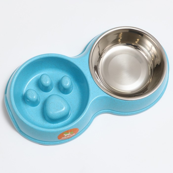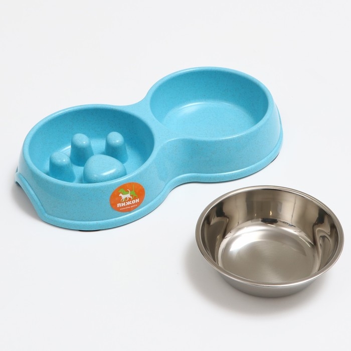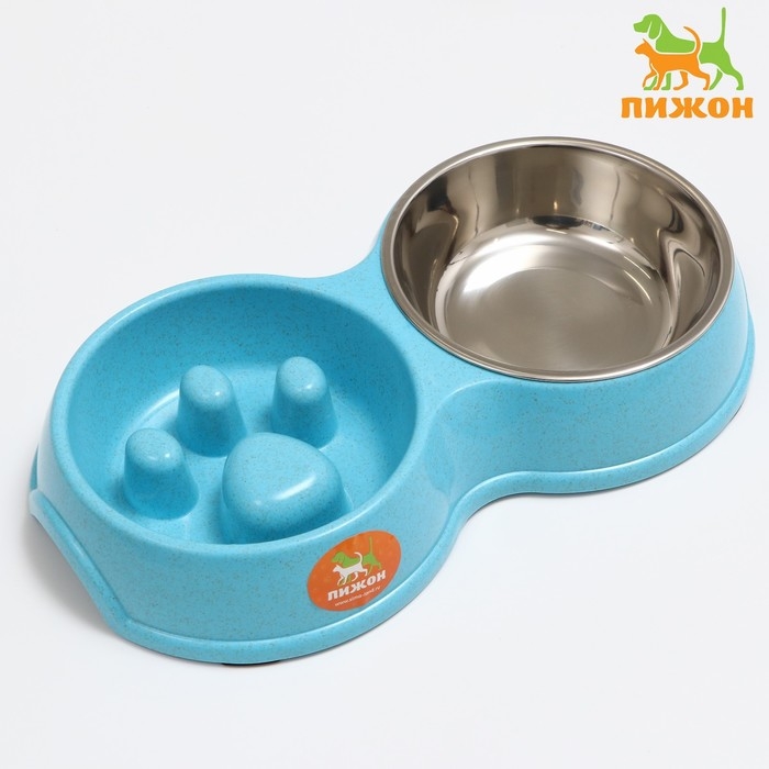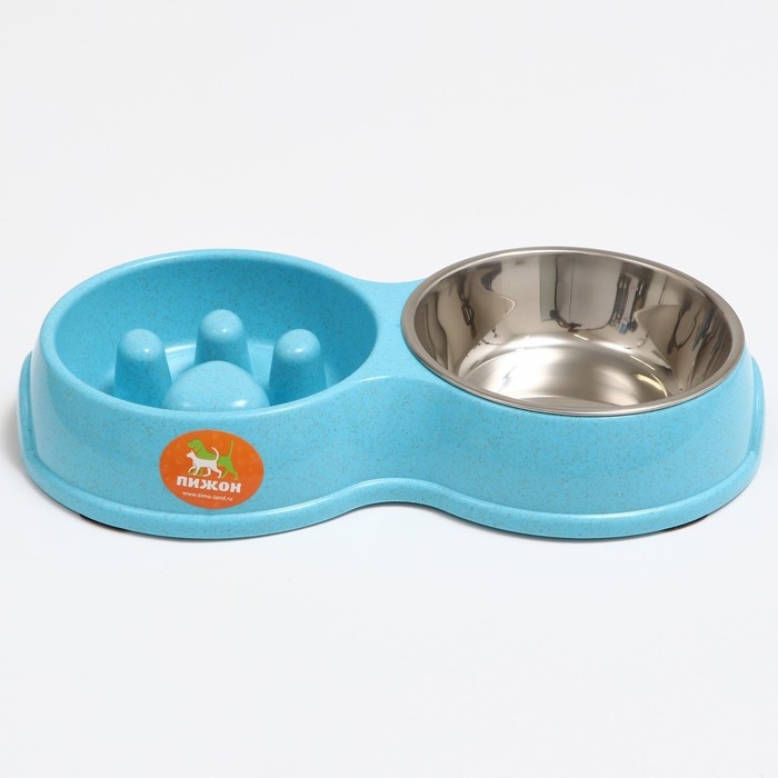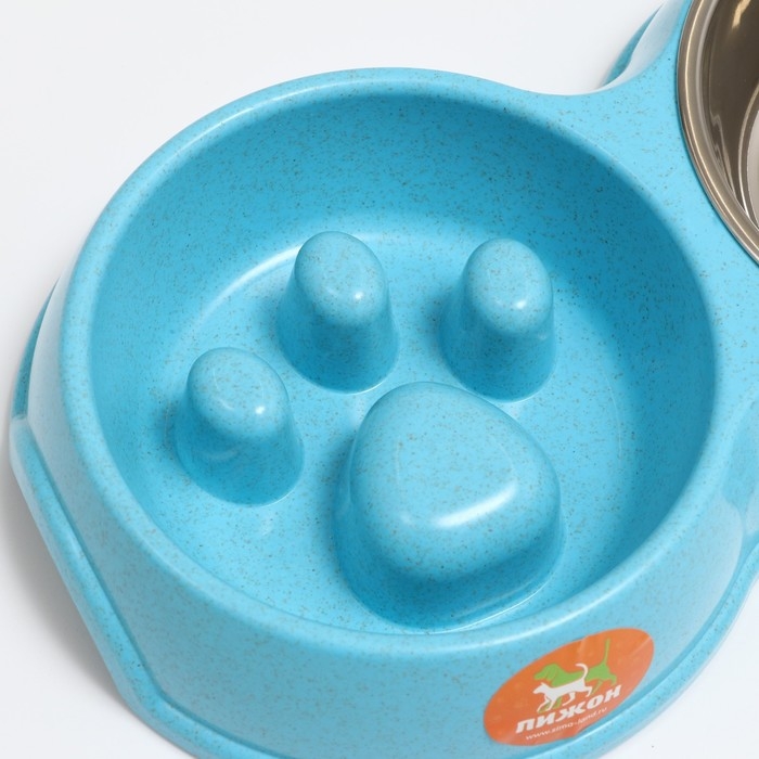 Миска двойная для медленного кормления 30,5 х 17 х 5 см, голубая