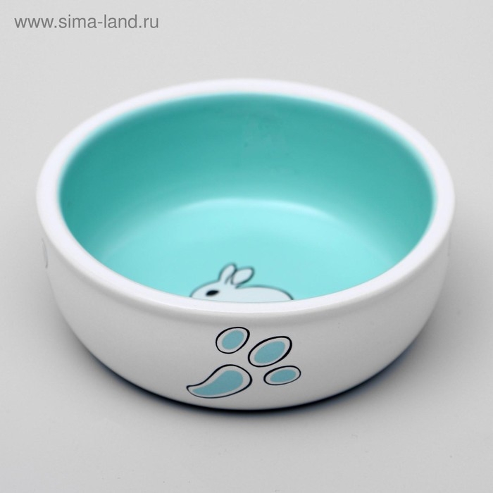 Миска керамическая для кроликов 200 мл 10 х 3,7 см, бело-зеленая
