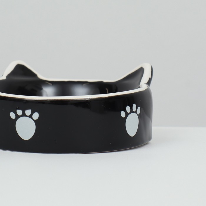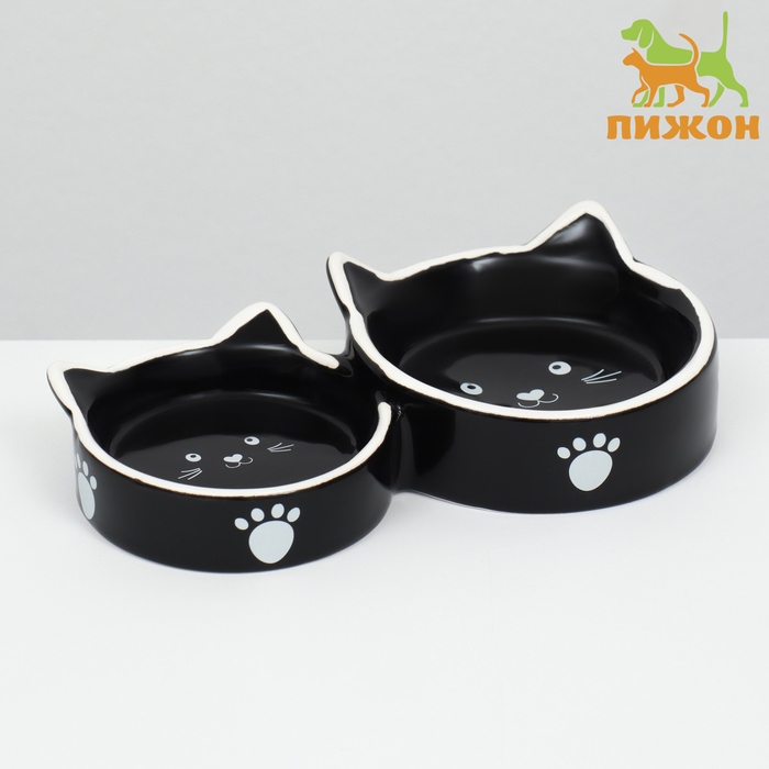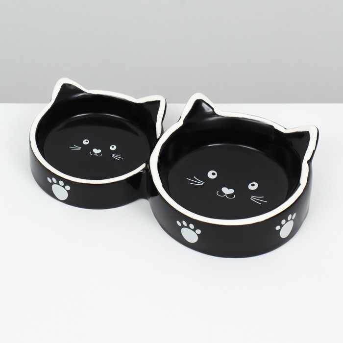Миска керамическая "Кошачье семейство" 40/60 мл двойная 19 х 10,5 х 3,5 см, чёрно-белая