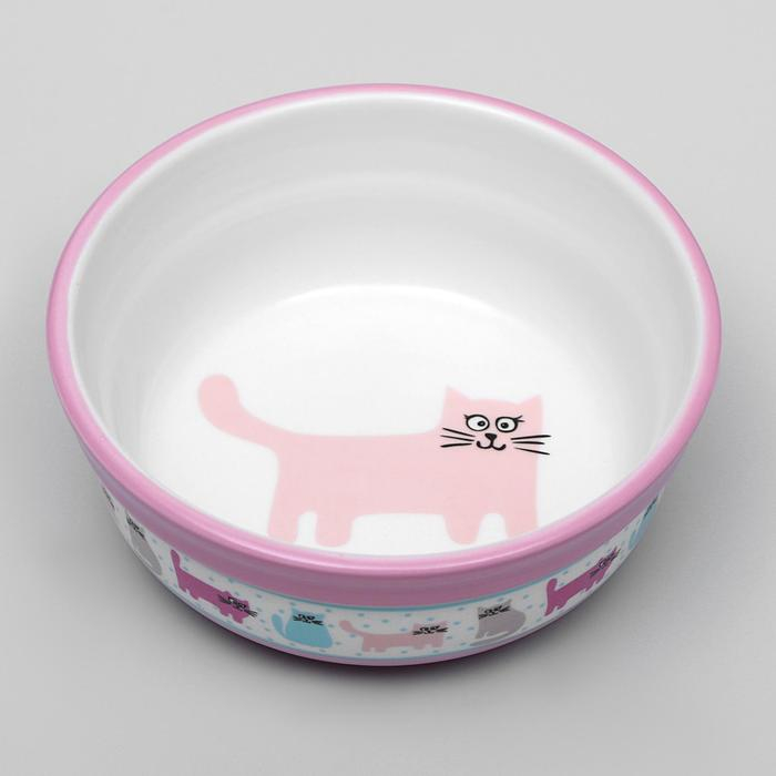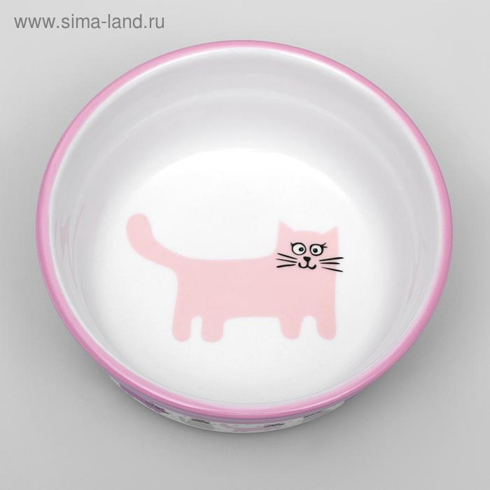 Миска керамическая "Кошачья жизнь" 270 мл 12,7 х 5 см, розовая