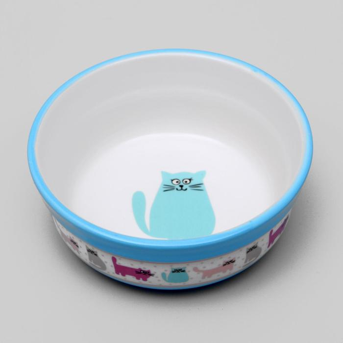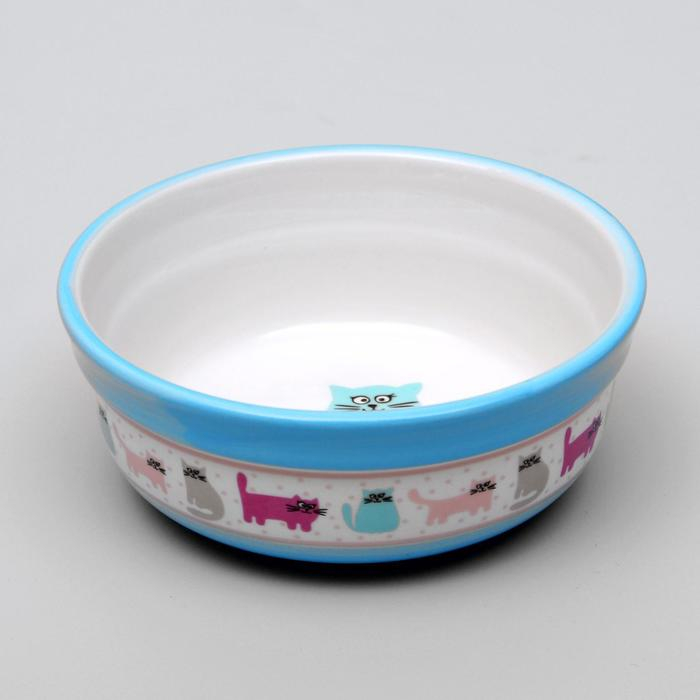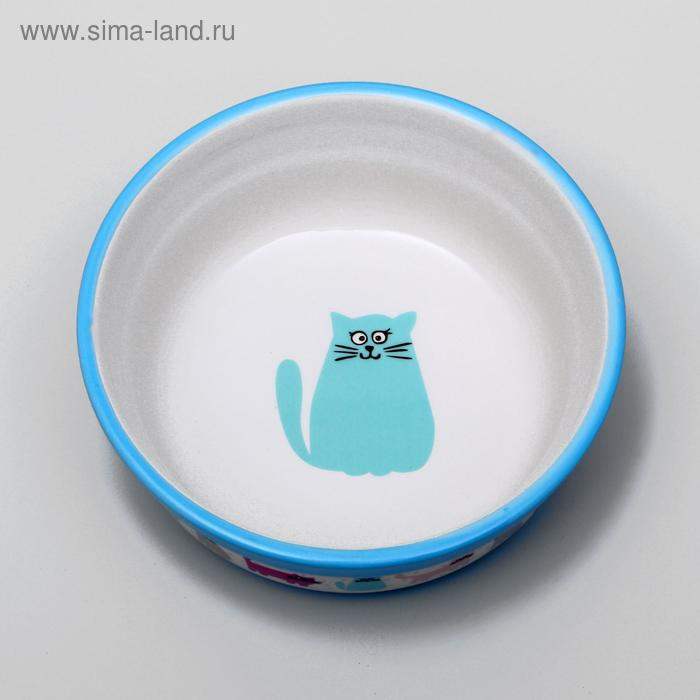 Миска керамическая "Кошачья жизнь" 300 мл 12,7 х 5 см, голубая
