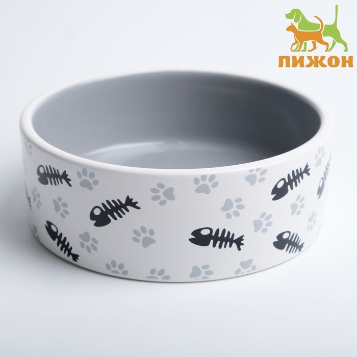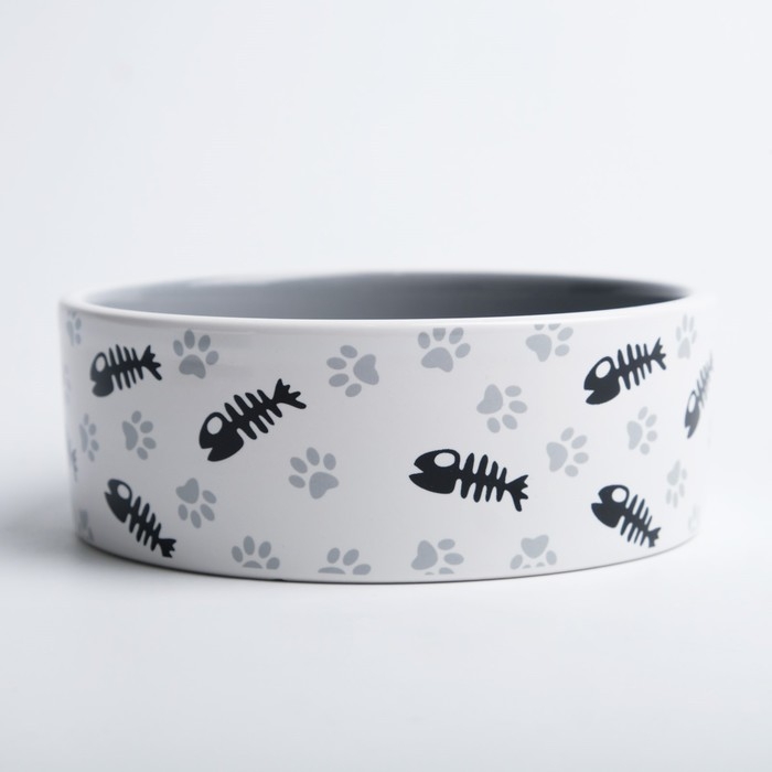 Миска керамическая "Рыбные косточки и лапки" 300 мл 12,5 x 4,5 cм, серая