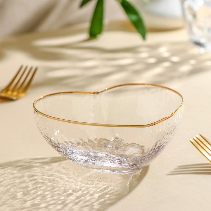 Миска стеклянная фигурная «Сердце», 220 мл, 12×10,5×5 см, цвет прозрачный
