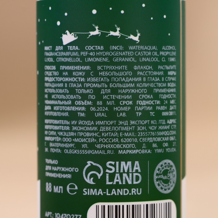 Мист для тела Happy New Year, 88 мл, аромат праздничный пунш, Новый Год