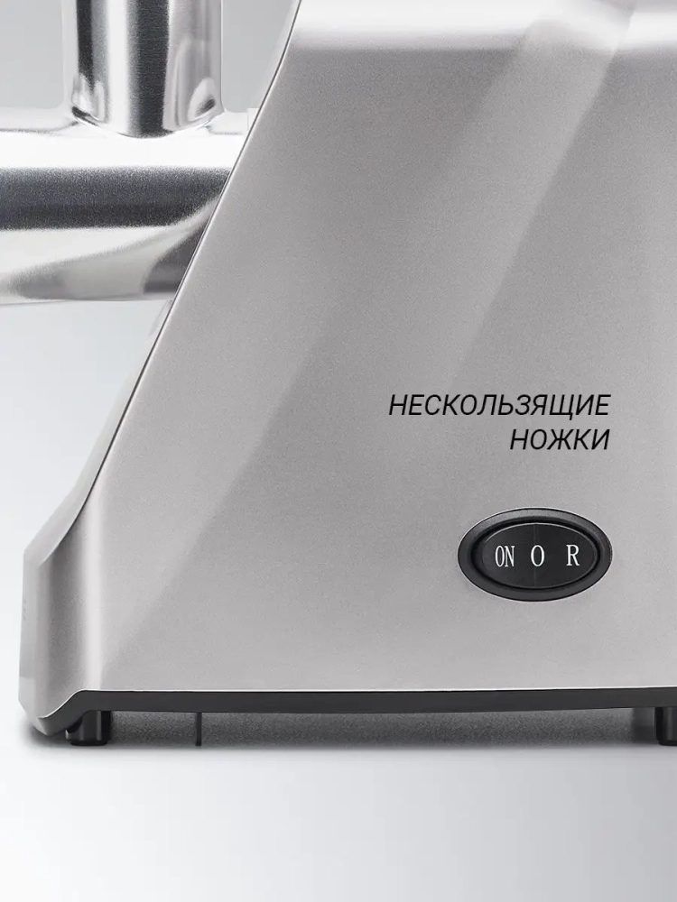 Корпус электромясорубки выполнен из прочного высококачественного пластика, который соответствует европейским стандартам и полностью безопасен для использования. Устойчивые резиновые ножки обеспечивают стабильное крепление на любой поверхности, позволяя перемалывать фарш без вибраций и смещений устройства. Измельчение мяса, птицы или рыбы для вкуснейших блюд станет простым и приятным процессом. Благодаря мясорубке, вы сможете приготовить нежнейший фарш для домашних колбас и сосисок. А сочные котлеты и нежные фрикадельки, станут вашими кулинарными шедеврами, созданными с легкостью и удовольствием.