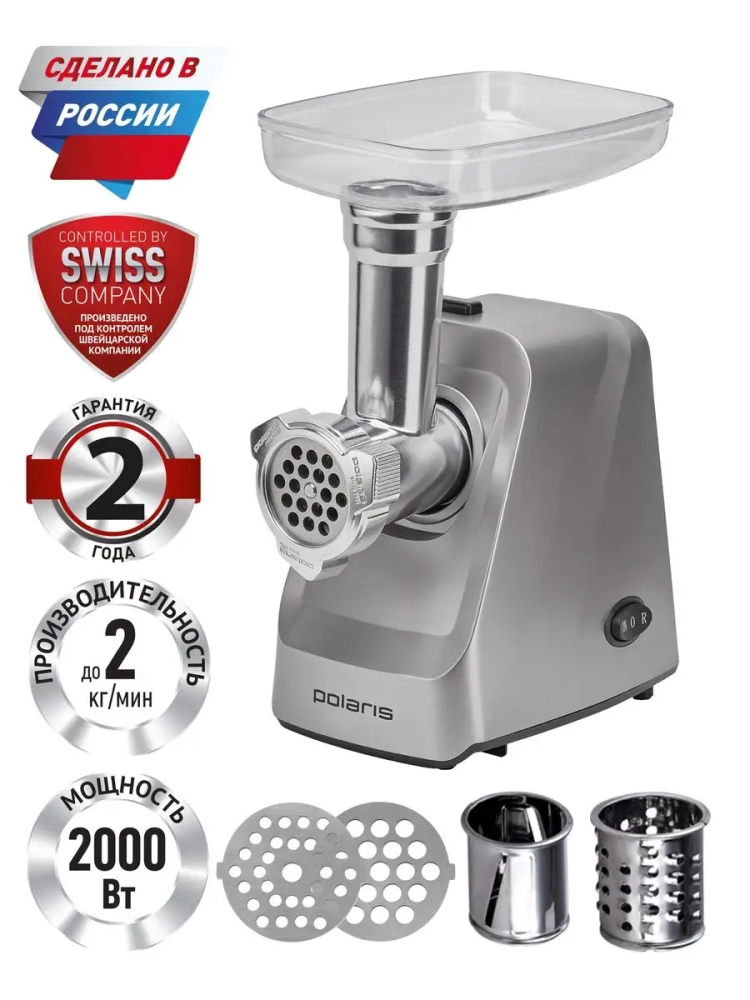 Мясорубка Polaris PMG 2077 RUS - идеальный помощник для хозяек, которые ценят свое время и любят готовить вкусные домашние блюда. Универсальная модель Polaris PMG 2077 RUS отличается впечатляющими характеристиками: высокая производительность, многофункциональность и стильный дизайн, сделают ее незаменимым помощником на вашей кухне.