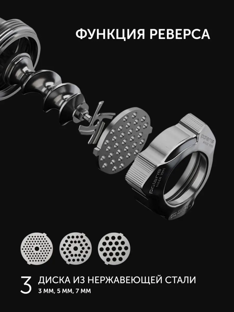 Мясорубка электрическая Polaris PMG 2585A RUS оснащена мощным мотором 2500 Вт и дополнительной защитой от перегрева PROtect+. Она автоматически отключит прибор при перегреве, предотвращая поломку и продлевая срок его службы. С технологией PROTech способна перерабатывать до 2,8 кг в минуту, функция усиливает крутящий момент и увеличивает эффективность работы. Электромясорубка выделяется многофункциональностью, стальной системой креплений ProMetal и расширенной комплектацией. В комплекте: 3 диска для фарша из нержавеющей стали 3, 5 и 7 мм, насадки для приготовления колбас и кеббе, шнековая соковыжималка и овощерезка с 4 барабанами (для крупной и мелкой терки, шинковки и драников). Кроме того, конструкция электромясорубки предусматривает съемный пластиковый лоток для фарша и хранения аксессуаров. Мясорубка электрическая с насадками и с соковыжималкой проста в эксплуатации, надежна и устойчива благодаря прорезиненным ножкам. Наличие функции реверса помогает быстро, не разбирая рабочий блок, удалить застрявшие кусочки мяса и жилы. Срок гарантийного обслуживания мясорубки Polaris – 2 года.