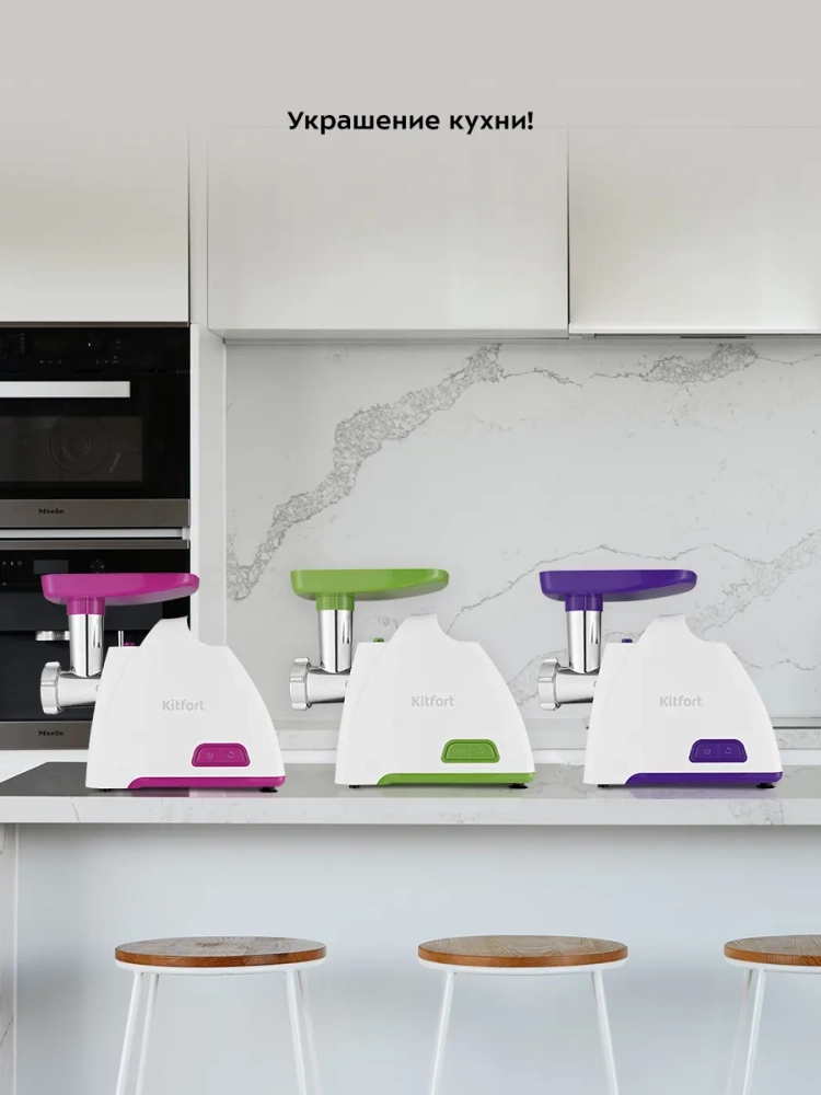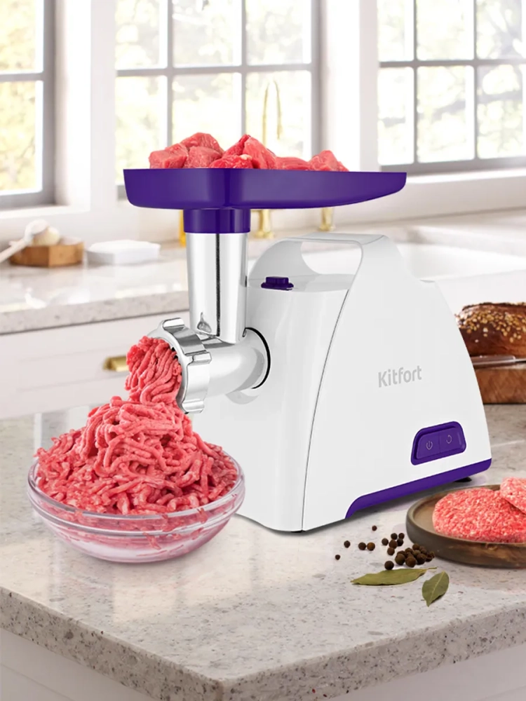 Мясорубка Kitfort KT-2112 оснащена мощным мотором. Корпус устройства выполнен из пластика. Мясорубка имеет 1 скорость работы и функцию реверса. Чтобы воспользоваться мясорубкой, вам необходимо на моторный блок установить загрузочный блок и зафиксировать, просто повернув. В комплект мясорубки входят 2 решетки для изготовления фарша и специальные насадки для колбас и кеббе. Корпус и лоток мясорубки легко мыть и чистить. Данная модель компактна, удобна в использовании и отличается хорошей производительностью, а ее привлекательный внешний дизайн украсит любую кухню.