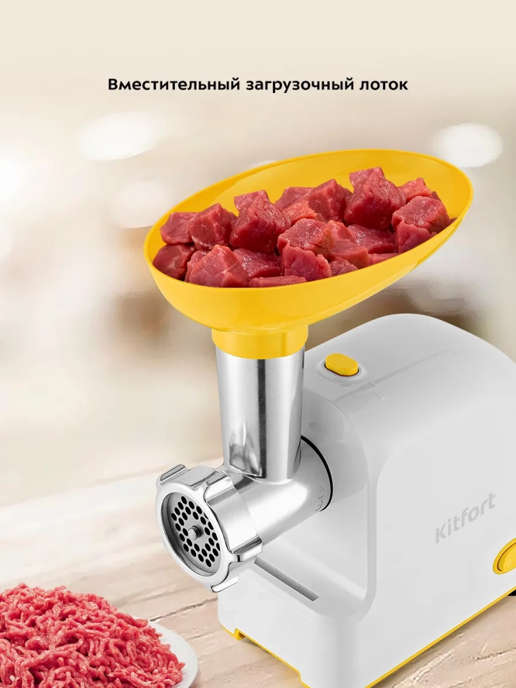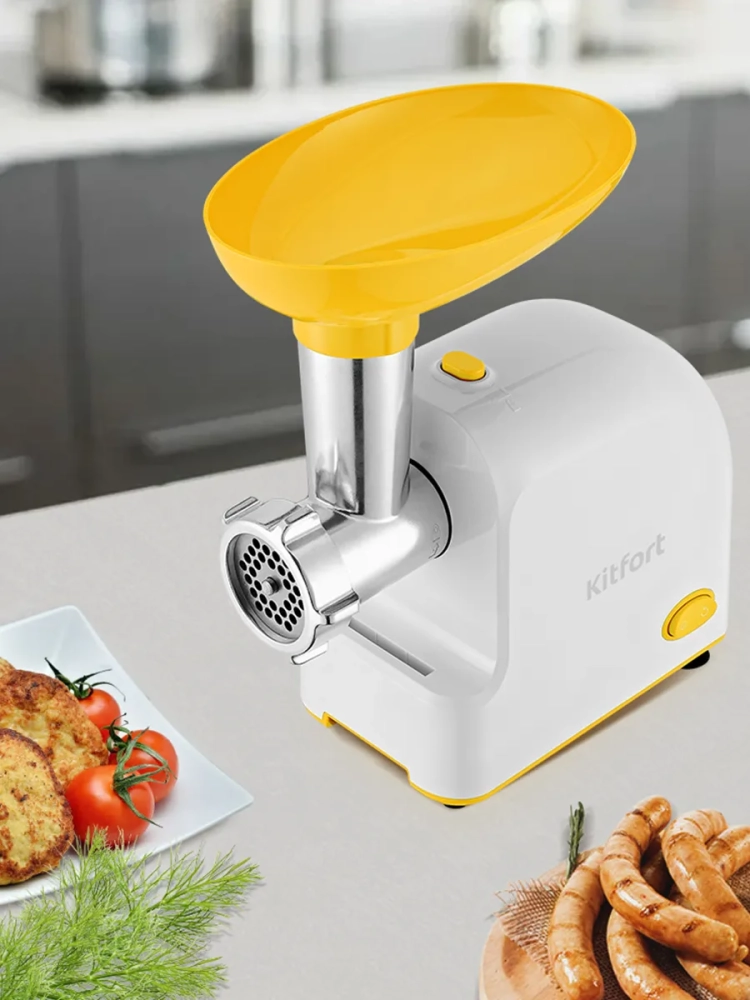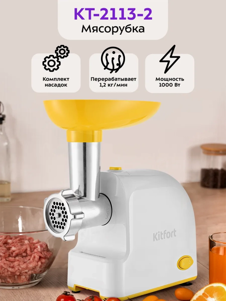 Мясорубка Kitfort KT-2113 оснащена мощным мотором. Корпус устройства выполнен из пластика. Мясорубка имеет одну скорость работы и функцию реверса. Чтобы воспользоваться мясорубкой, вам необходимо на моторный блок установить загрузочный блок и повернуть для фиксации. В комплект мясорубки входят 2 решетки для изготовления фарша и специальные насадки для колбас и кеббе. Корпус и лоток мясорубки легко мыть и чистить. Данная модель компактна, удобна в использовании и отличается хорошей производительностью, а ее привлекательный внешний дизайн украсит любую кухню.