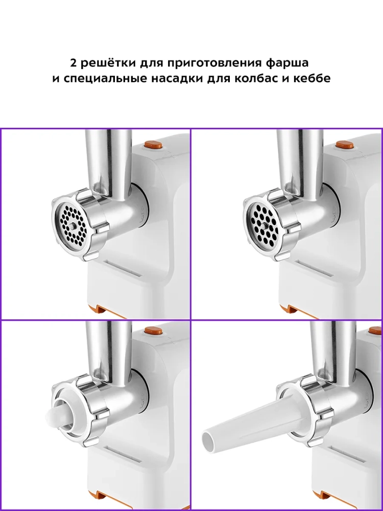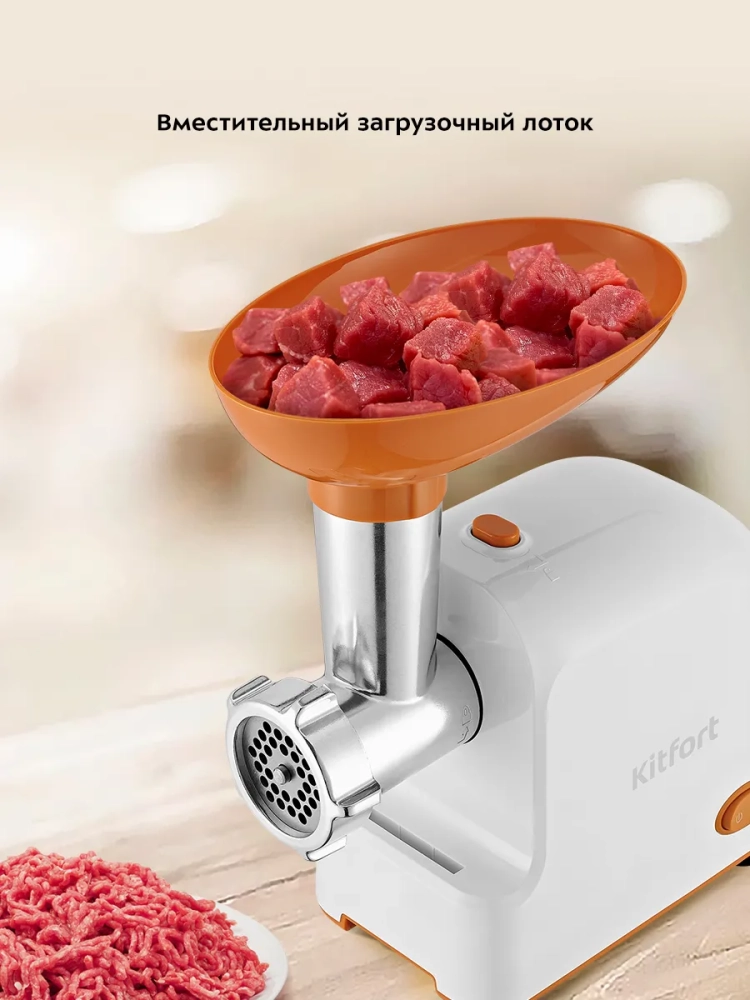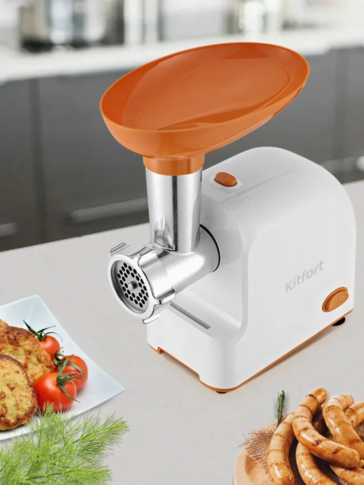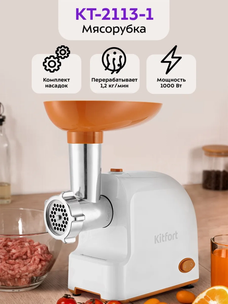 Мясорубка Kitfort KT-2113 оснащена мощным мотором. Корпус устройства выполнен из пластика. Мясорубка имеет одну скорость работы и функцию реверса. Чтобы воспользоваться мясорубкой, вам необходимо на моторный блок установить загрузочный блок и повернуть для фиксации. В комплект мясорубки входят 2 решетки для изготовления фарша и специальные насадки для колбас и кеббе. Корпус и лоток мясорубки легко мыть и чистить. Данная модель компактна, удобна в использовании и отличается хорошей производительностью, а ее привлекательный внешний дизайн украсит любую кухню.