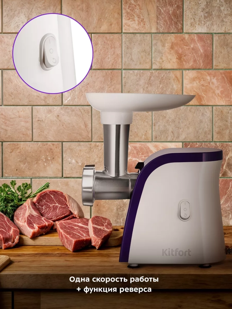Мясорубка Kitfort KT-2119 предназначена для измельчения сырого и вареного мяса, приготовления колбас и кеббе. Корпус устройства выполнен из пластика, а режущие детали — из металла, что позволяет мясорубке с легкостью справляться с мясом разной жесткости.