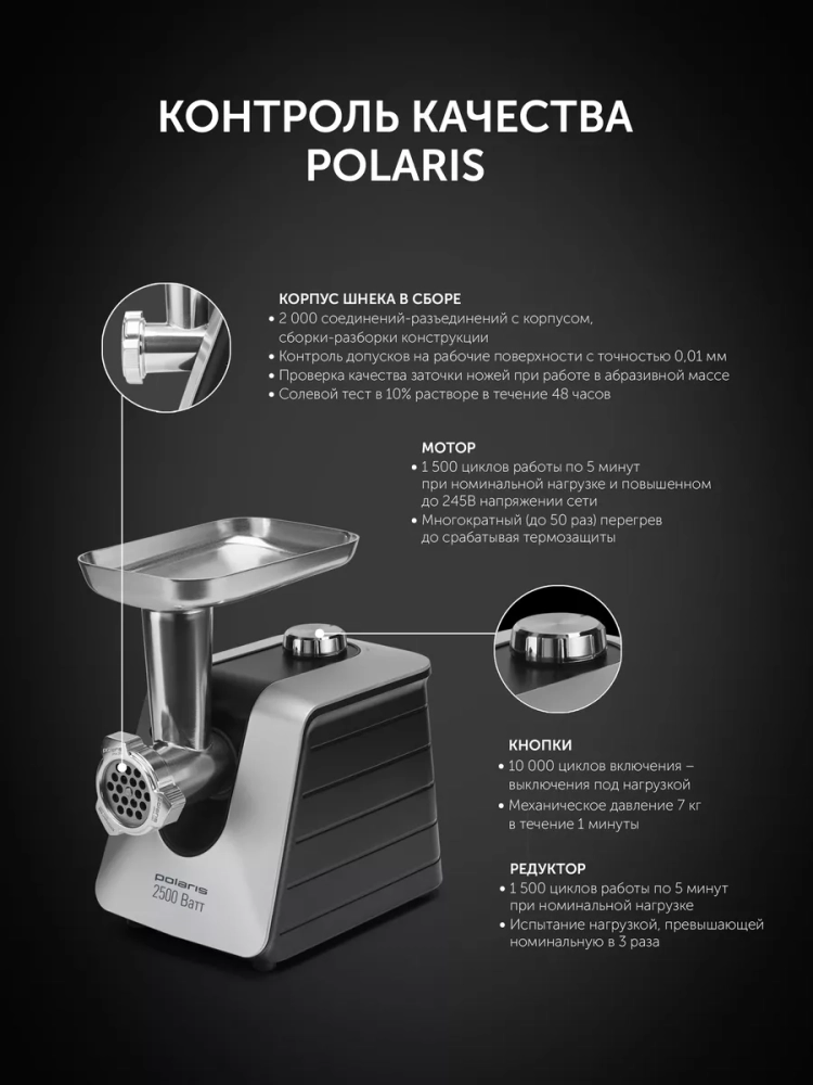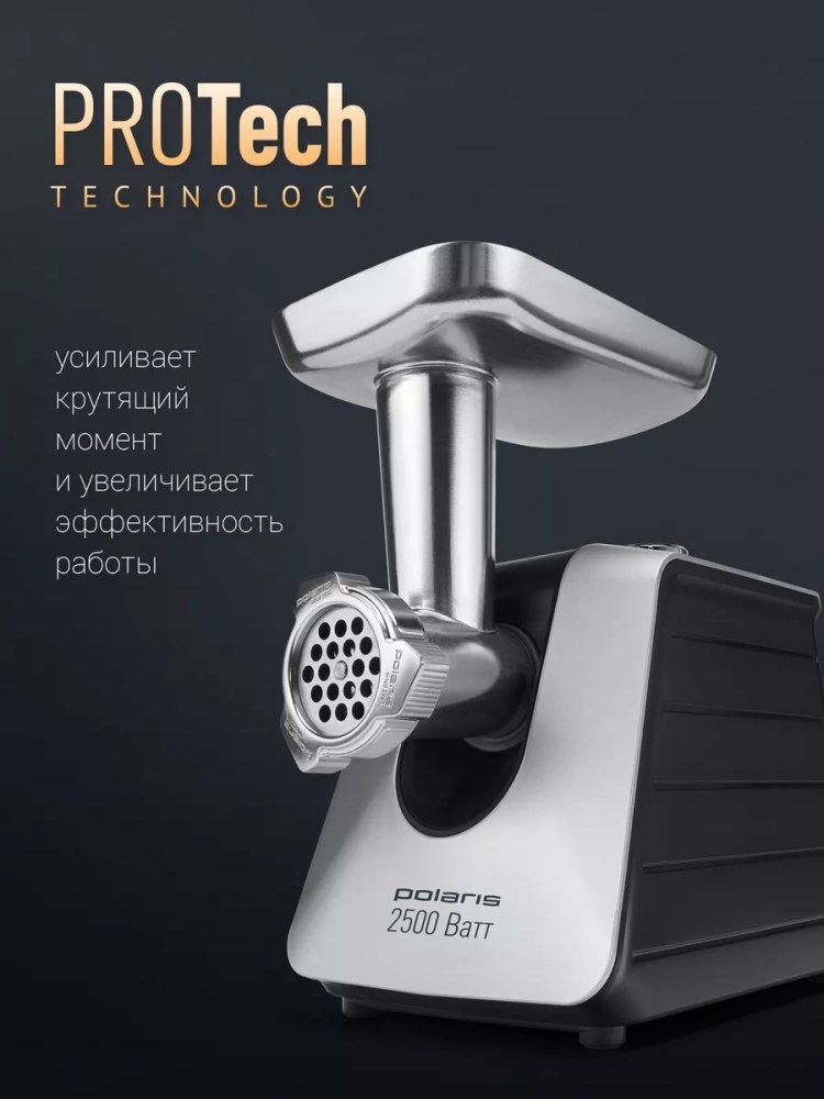 С максимальной производительностью до 2.7 кг фарша в минуту, мясорубка электрическая Polaris справится с любой задачей за считанные минуты. Оснащенная мощностью в 2500 Вт, эта техника для кухни легко переработает даже самые жесткие куски мяса.