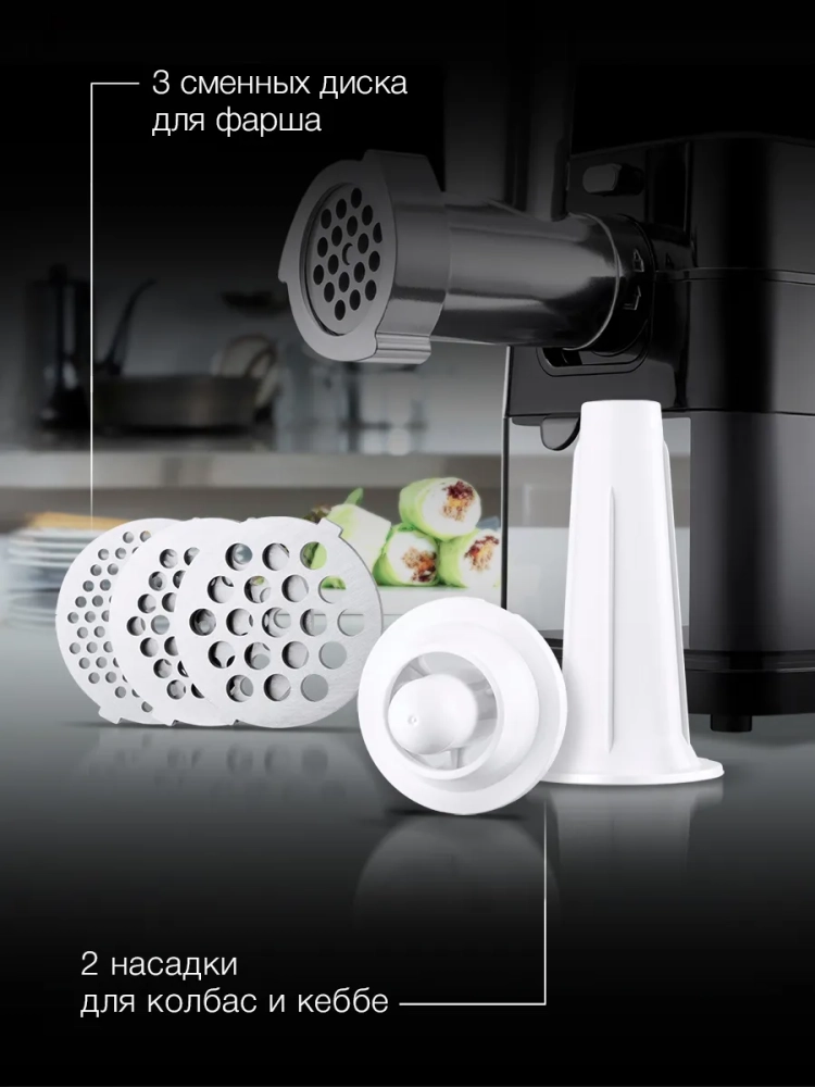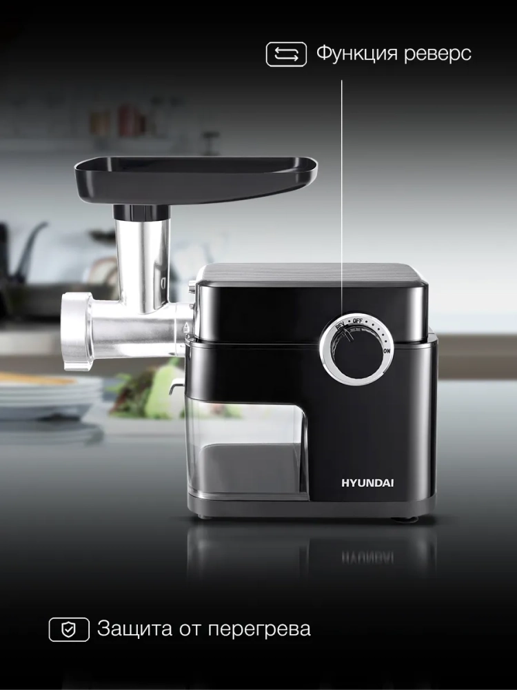 Мясорубка Hyundai HY-MG5491 черный/черный, мощность 1900Вт, дисков для фарша 3, материал лотка пластик, длина кабеля питания 1м, диски с отверстиями диаметром 3 мм, 5 мм и 7 мм