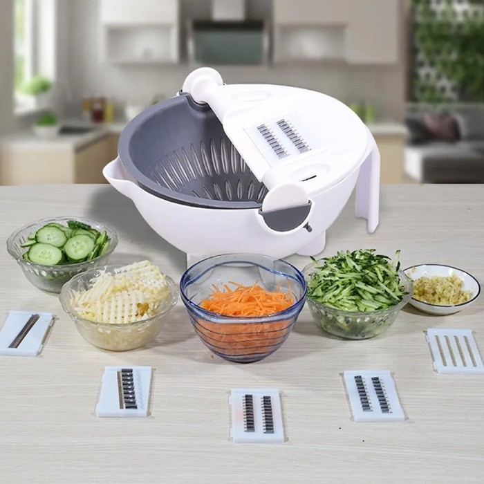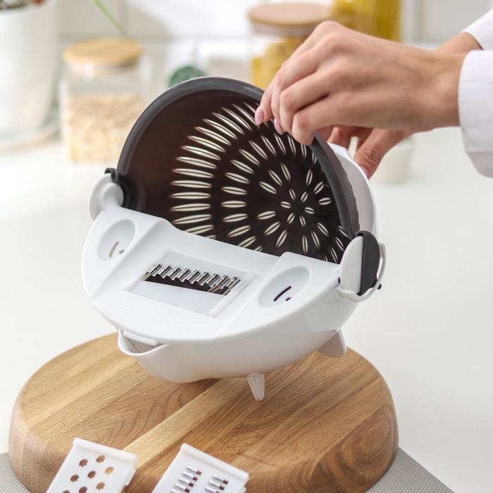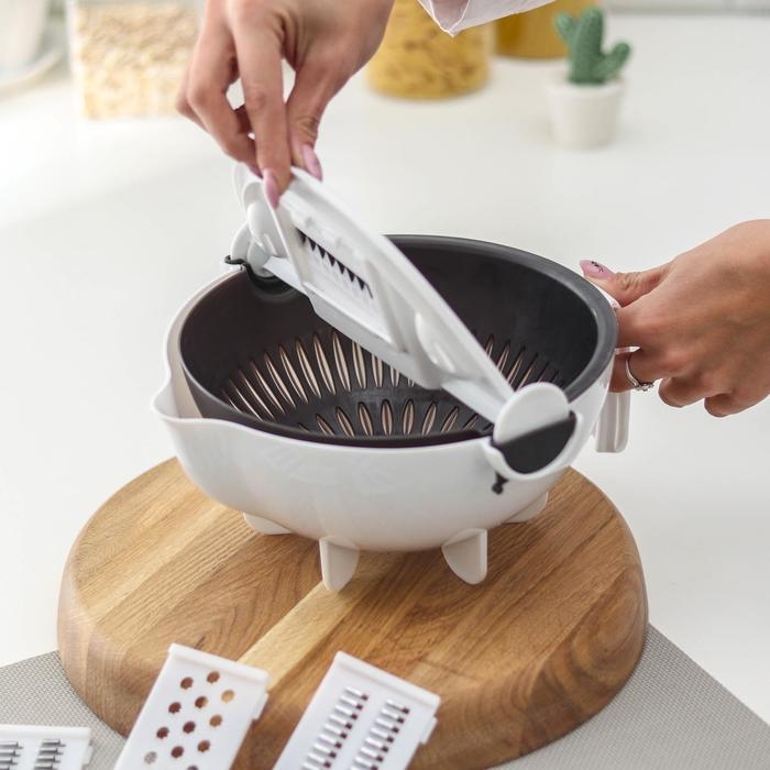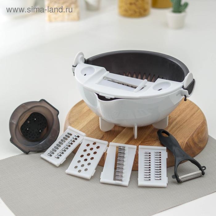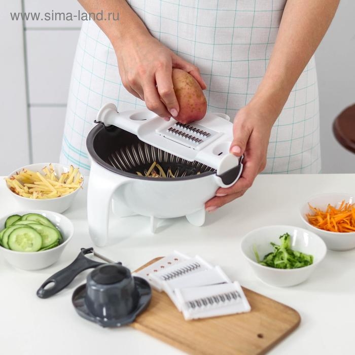 Многофункциональная овощерезка «Маджестик», со сливной корзиной, 22,3×13,5×22,5 см, цвет бело-серый