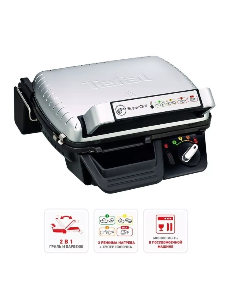 С контактным электрогрилем для дома от Tefal Supergrill GC450B32 каждый приём пищи станет вкусным, полезным и простым!