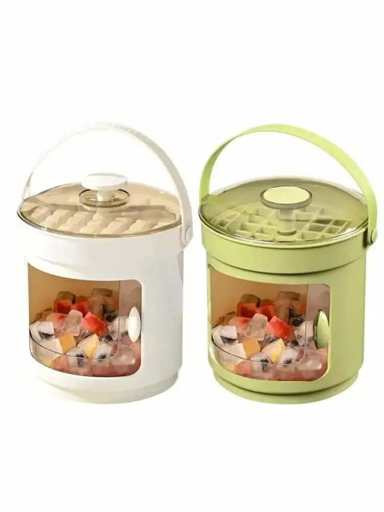 Форма для льда «Ведерко» с крышкой и ручкой — стиль и удобство в одном аксессуаре Ищете практичную и компактную форму для льда? Тогда ведерко для заморозки кубиков — именно то, что вам нужно! Это не просто форма, а многофункциональный помощник для дома, дачи или пикника. Форма выполнена в виде стильного ведра с крышкой, ручкой и прозрачным окошком. Благодаря 36 ячейкам вы сможете замораживать не только воду, но и соки, ягоды, кусочки фруктов или шоколада. А после заморозки кубики легко вытряхиваются в нижний контейнер и готовы к использованию. В чём плюсы? Компактная форма для заморозки и хранения льда Удобная ручка — легко переносить даже полной Крышка защищает от запахов и пыли Прозрачное окно — видно, сколько льда осталось Безопасный пищевой пластик, без запаха Идеально для коктейлей, лимонадов, напитков и детского питания Характеристики: Объем: 36 ячеек Материал: пищевой пластик Форма льда: кубики