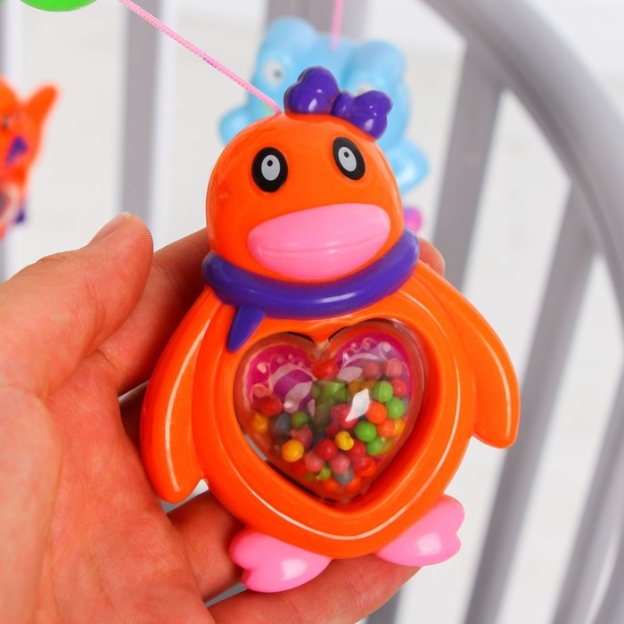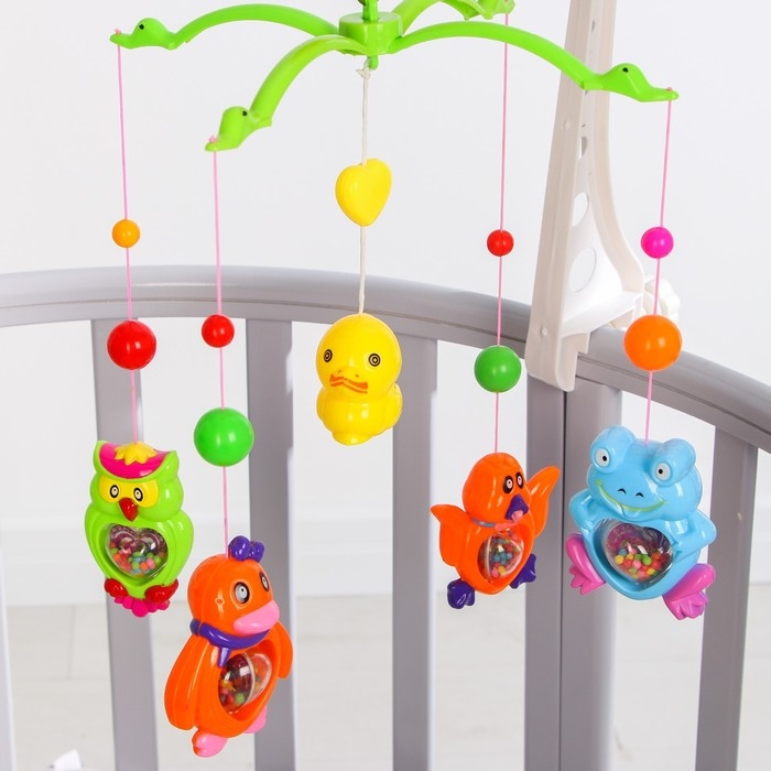 Вращающаяся музыкальная карусель поможет убаюкать малютку. Во время бодрствования грудничок будет с интересом наблюдать за движением весёлых фигурок, научится распознавать звуки, цвета и формы. Подросший малыш начнёт тянуться ручками к игрушкам: так ребёнок тренирует координацию движений и пробует оценивать расстояние до предметов.