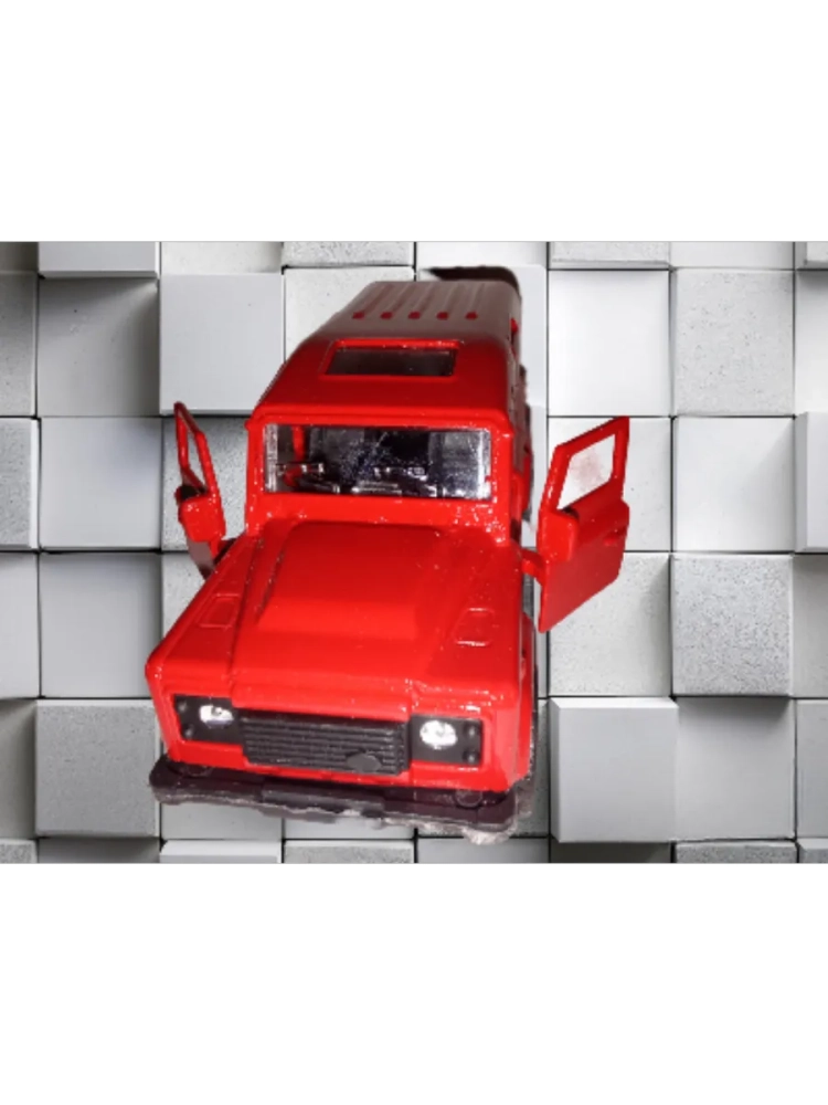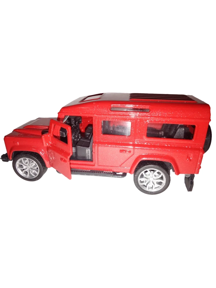 Модель автомобиля внедорожник. У машинки открываются двери. Игрушка оснащена инерционным механизмом. Чтобы она поехала вперед, ее нужно немного откатить назад. С такой машинкой ребенок может устраивать гонки с друзьями. Игрушка развивает мелкую моторику, реакцию и координацию движения. Она надолго займет внимание ребенка, будет прекрасным подарком для мальчиков или пополнит коллекцию любителя иномарок