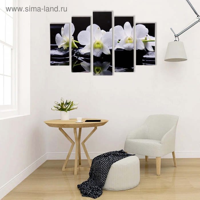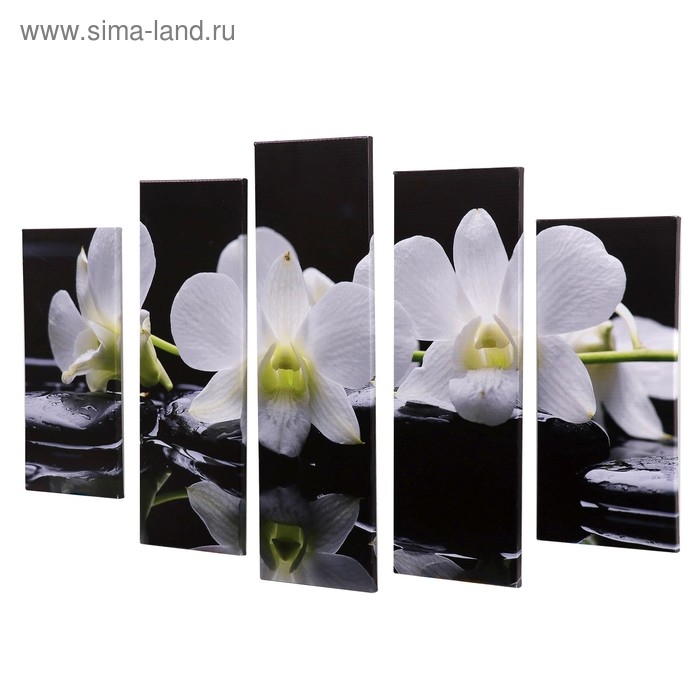 Модульная картина "Белые орхидеи у воды" (2-23х52; 2-24х70; 1-24х80) 120х80см