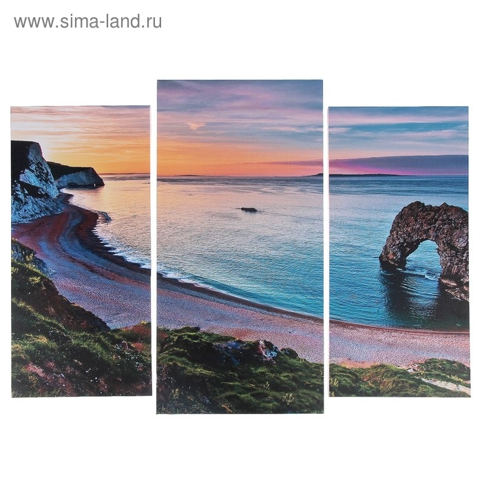 Модульная картина "Берег на рассвете" (2-25х52; 1-30х60) 60х80 см