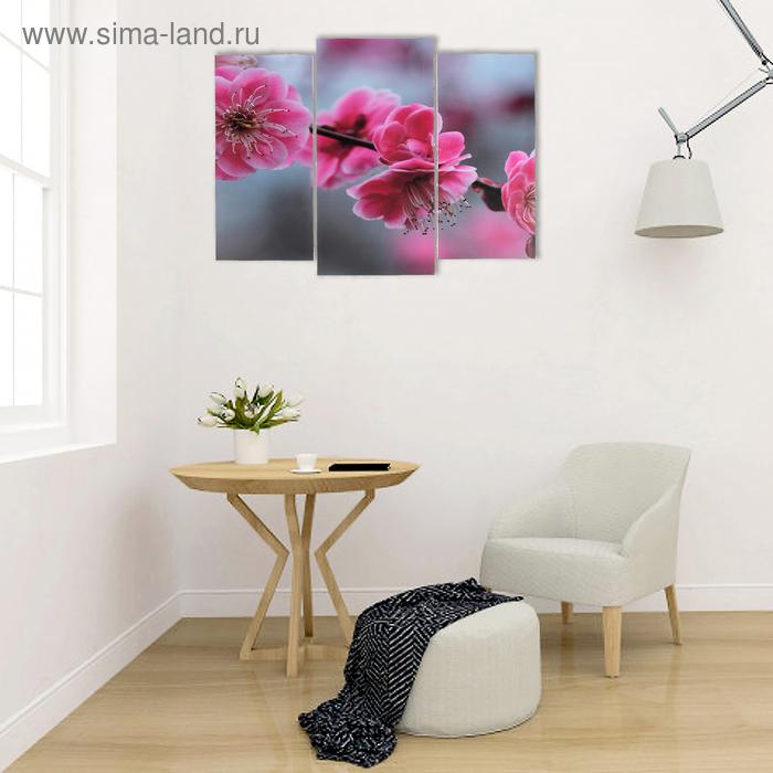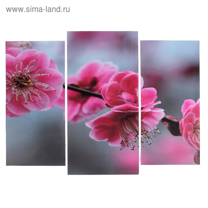 Модульная картина "Цветы сакуры" (2-25х52; 1-30х60) 60х80 см