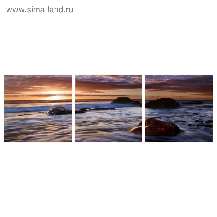 Модульная картина "Камни в море" (3-35х35) 35х105 см