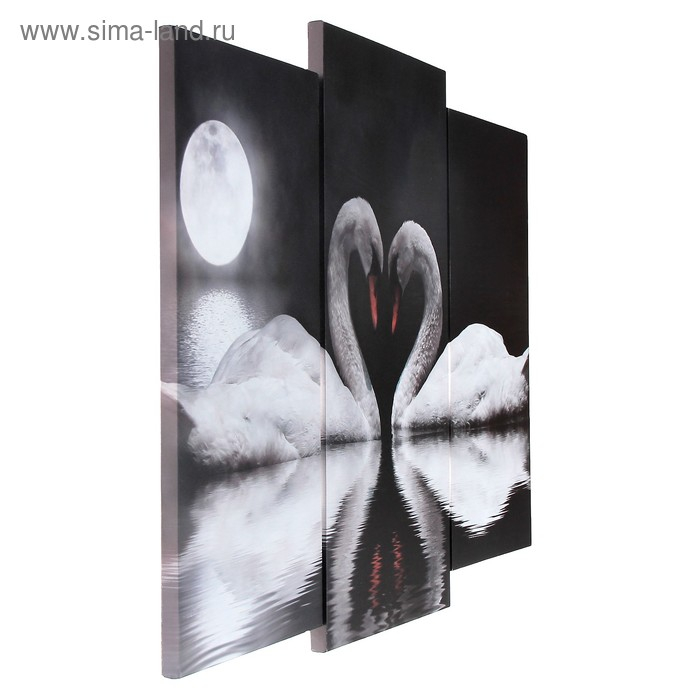 Модульная картина "Лебеди под луной" (2-25х52; 1-30х60) 60х80 см