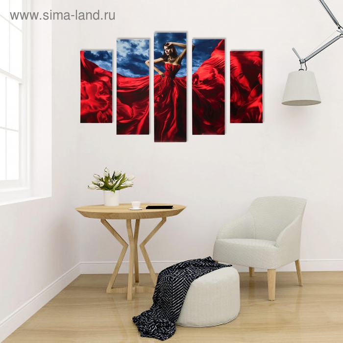 Модульная картина "Леди стиль" (2-23х52; 2-24х70; 1-24х80) 120х80см