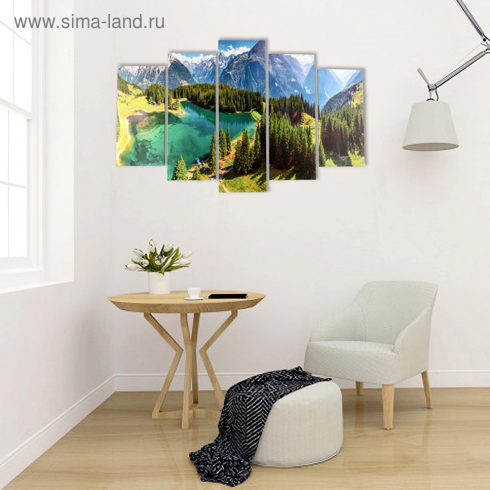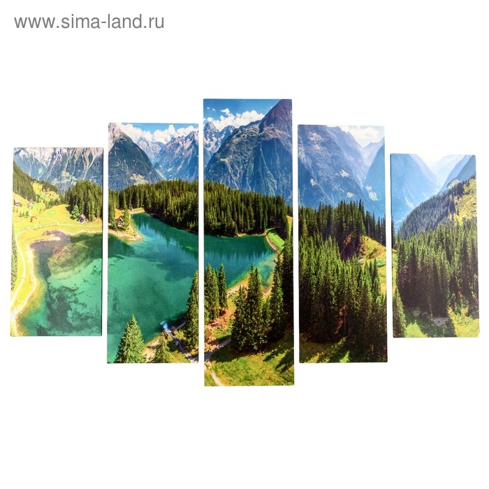 Модульная картина "Лесное озеро в горах" (2-25х50, 2-25х67, 25х80 см) 80х140 см