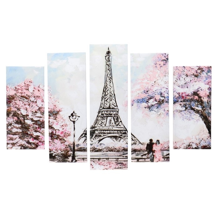 Модульная картина "Нарисованный Париж" (2-23х52; 2-24х70; 1-24х80) 120х80см