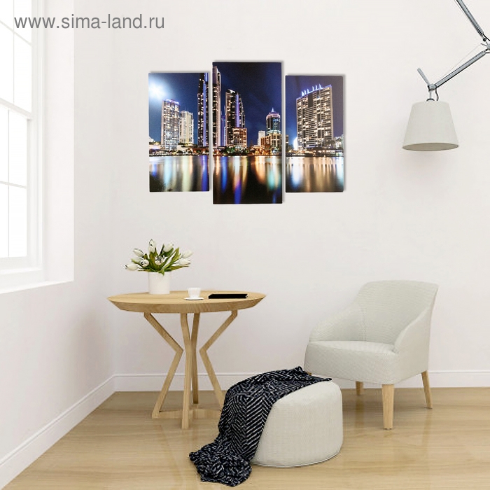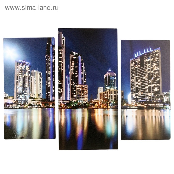 Модульная картина "Ночной мегаполис" (2-25х50, 30х60 см) 60х80 см