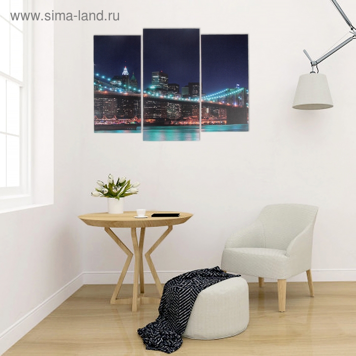 Модульная картина "Ночной мост" (2-25х52; 1-30х60) 60х80 см