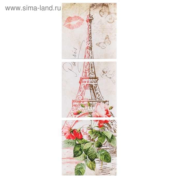 Модульная картина "Романтичный Париж" 111х37 см (3 - 37х37см)