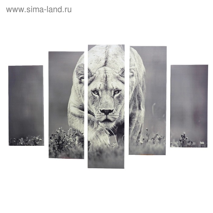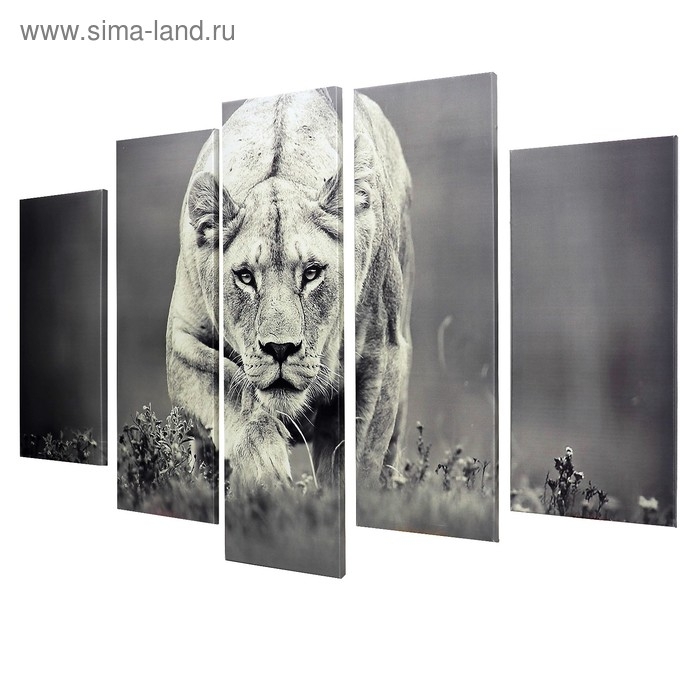 Модульная картина "Взгляд львицы" (2-23х52; 2-24х70; 1-24х80) 120х80см