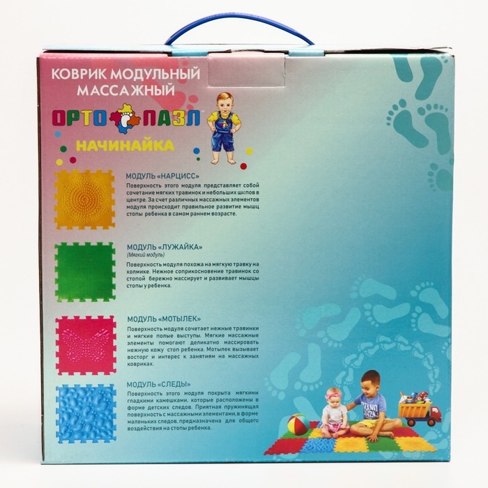 Модульный массажный коврик ОРТО ПАЗЛ «Начинайка», 8 модулей, 4 вида