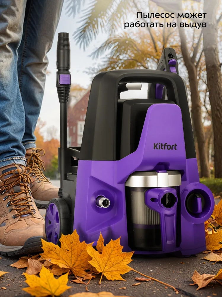 Мойка высокого давления «2 в 1» Kitfort КТ-9235 совмещает в себе функции двух устройств: мойки высокого давления и пылесоса.