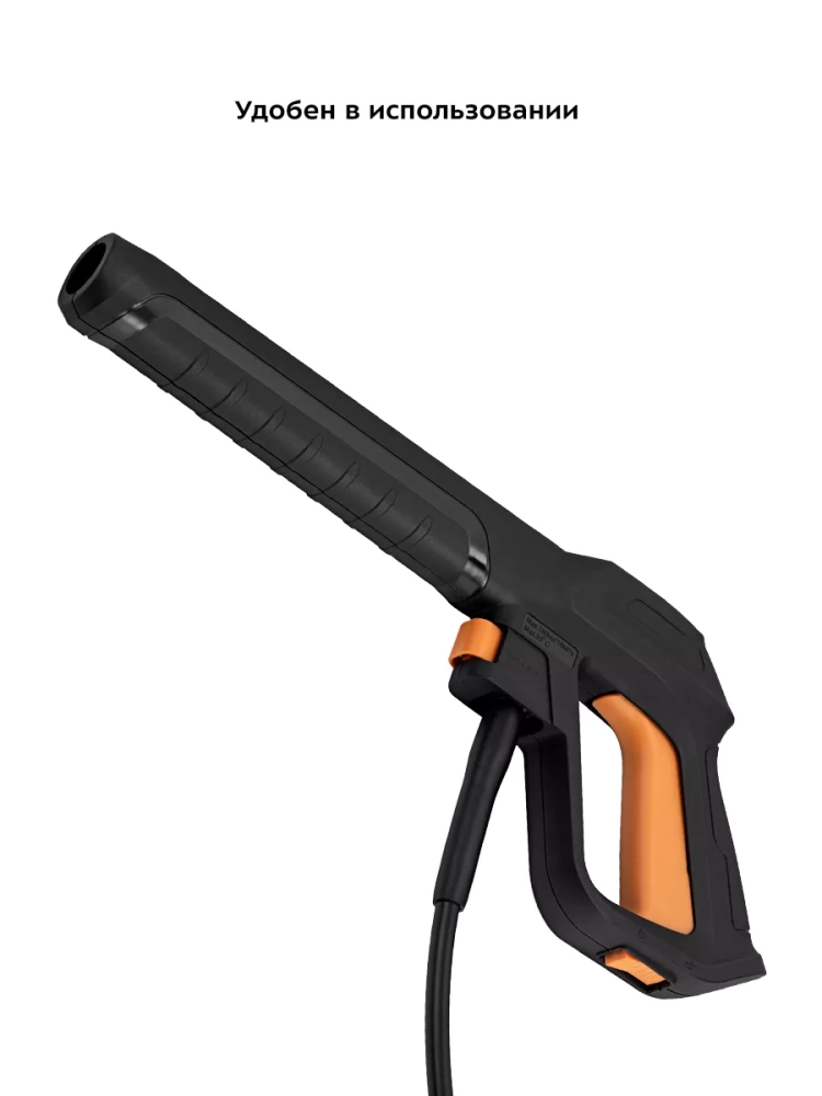 Для удобства хранения на корпусе есть держатели насадок, моющего пистолета, высоконапорного шланга и шнура питания. На корпусе есть ручка для переноски прибора, а также ручка и колеса для удобного перемещения во время работы устройства.