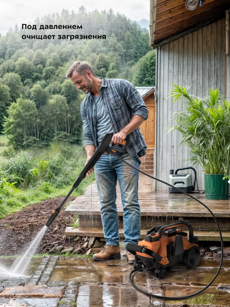 Мойка высокого давления Kitfort KT-9162 предназначена для мытья автомобилей, садовых принадлежностей, фасадов, террас, плитки, кирпичной кладки и иных влагостойких поверхностей с помощью струи воды под высоким давлением.
