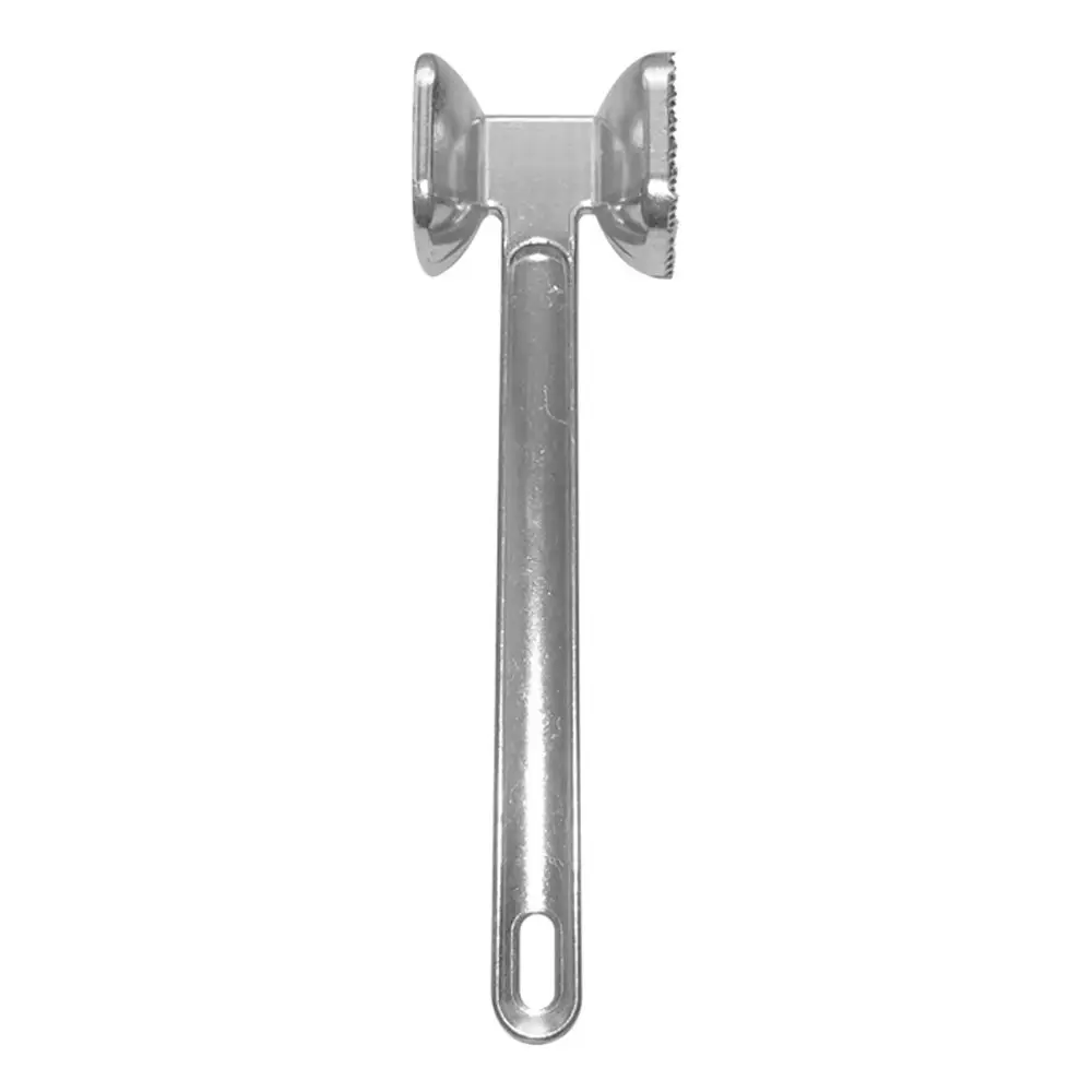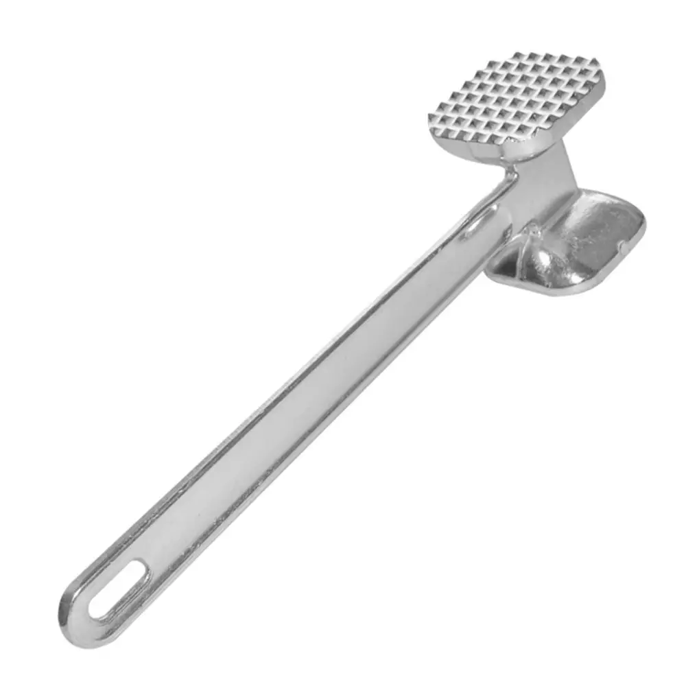 Кухонный молоток для мяса должен быть в каждом хозяйстве! С ним вы приготовите сочные и мягкие отбивные. Инструмент имеет две рабочие поверхности — гладкую и с зубцами. Зубчики используются для отбивки и размягчения жилок. Мясные блюда получатся мягкими, нежными и аппетитными. Молоток для отбивания мяса изготовлен из алюминия — гигиеничного прочного материала. После использования тщательно промойте изделие с моющими средствами.