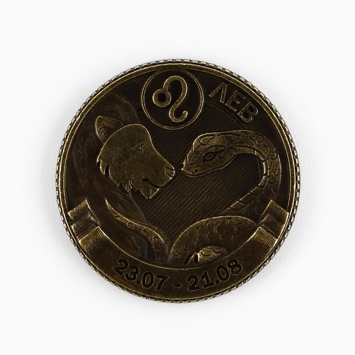 Монета гороскоп 2025 новогодняя «Лев» на Новый год, латунь, диам. 2, 5 см