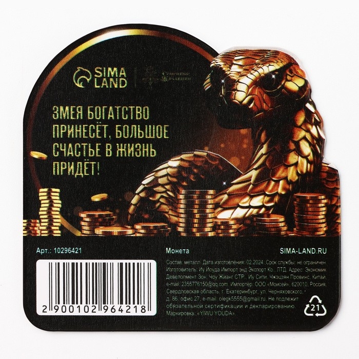 Монета новогодняя «Богатого 2025» на Новый год, диам. 2,2 см