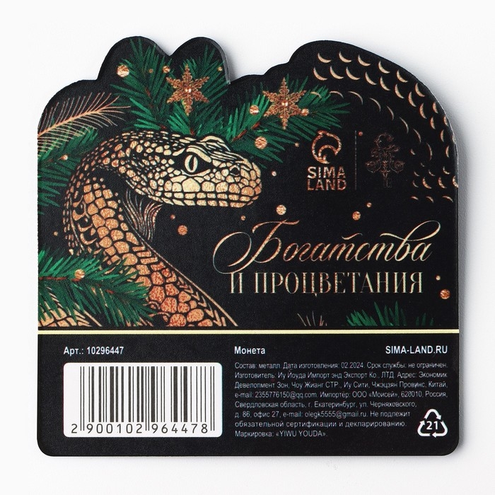 Монета новогодняя «Успеха» на Новый год, диам. 2,2 см