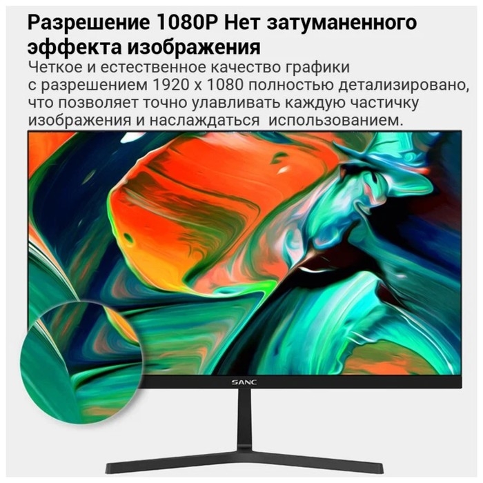 Монитор SANC M2253, 21.5", VA, 1920×1080, 75Гц, 5 мс, D-Sub, чёрный