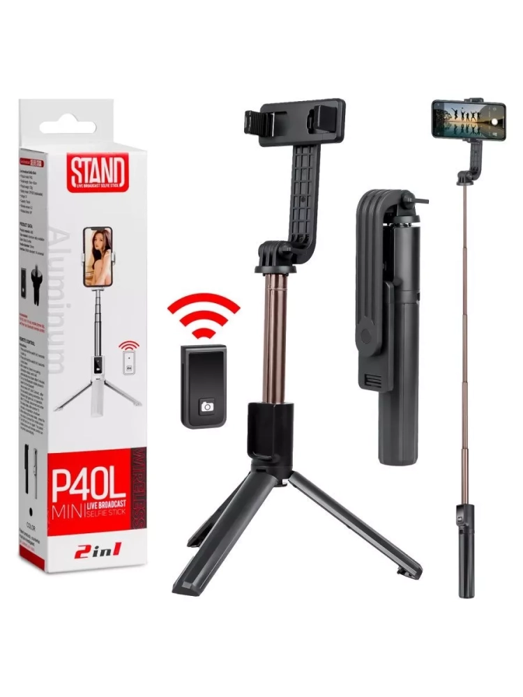 Штатив с пультом 1LED P40L. Простое и надежное приспособление совместимо с разнообразными мобильными устройствами и цифровыми камерами. Раскладная палка для селфи с триподом отдалит объектив смартфона для большего обзора или превратится в полноценный штатив. Простое и надежное приспособление совместимо с разнообразными мобильными устройствами. Длина монопода для селфи с триподом увеличивается до 83 см, что обеспечивает невероятный обзор камеры. Даже самую большую компанию или обширную панораму запечатлеть не составит труда. Наличие встроенного трипода быстро превратит классическую селфи-палку в удобный штатив, при этом управление затвором останется в руках пользователя. Управление осуществляется при помощи пульта через Bluetooth. Максимальная нагрузка - 0.5 кг.