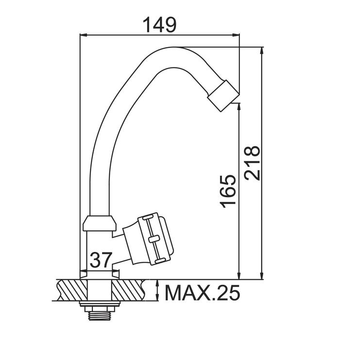 Кран на одну воду ZEIN Z2019, круглая ручка, пластик, высокий R-образный излив, белый
