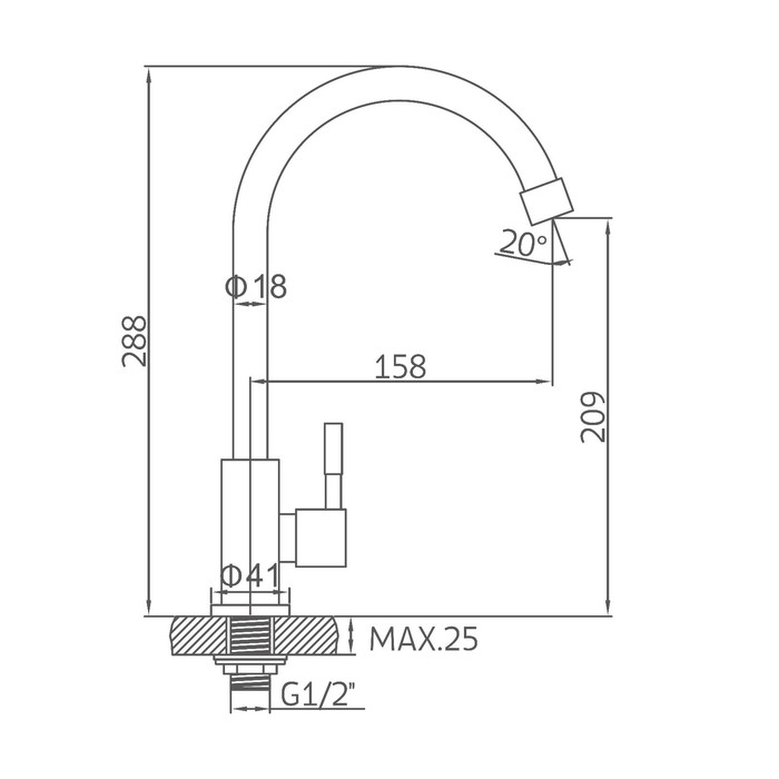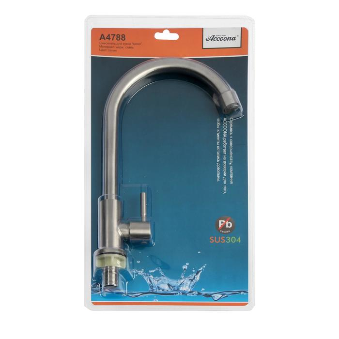 Моносмеситель для кухни Accoona A4788, однорычажный, нержавеющая сталь, сатин