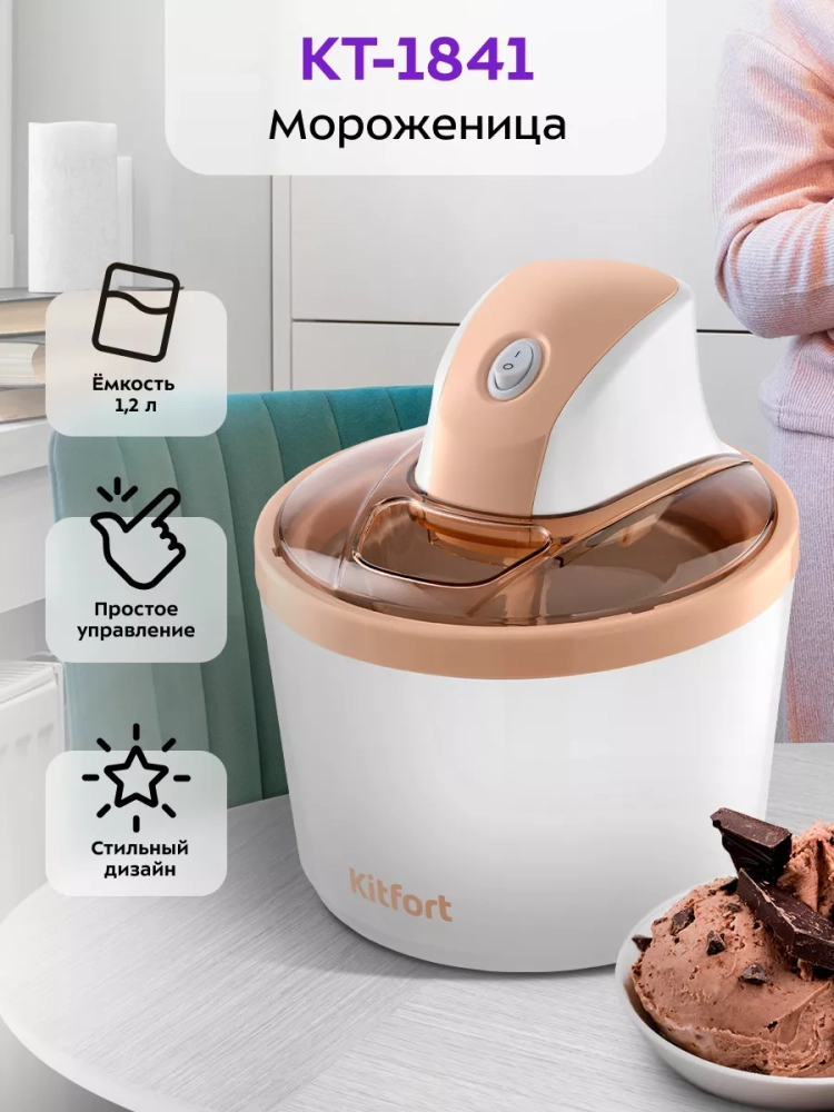 Полуавтоматическая мороженица Kitfort КТ-1841 поможет вам приготовить настоящее мороженое из натуральных продуктов, а также сорбет, джелато и замороженный йогурт. Мороженица снабжена системой смешивания и имеет чашу c хладагентом для охлаждения мороженого во время приготовления.