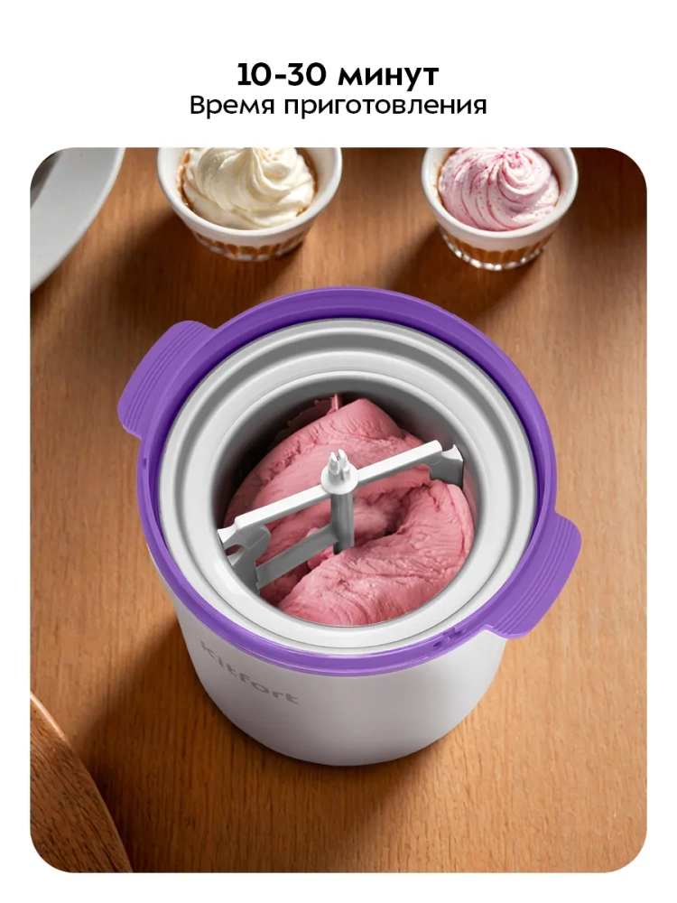Полуавтоматическая мороженица Kitfort КТ-1847 поможет вам приготовить настоящее мороженое из натуральных